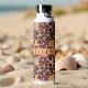 Eine wunderschöne Wasserflasche mit einem von Hand gezeichnet Muster an Blume und Seestern, verstreut auf schokoladenbraunem Hintergrund. Der Namensbereich ist vollständig anpassbar und eignet sich somit hervorragend zum Gaben oder Behandeln. Fügen Sie Ihren Namen hinzu, wählen Sie Ihren Lieblings-Schriftart und heben Sie sich von der Masse ab.
