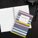 Ein einfaches, buntes, pastellfarbenes Streifen-Muster mit einem maßgeschneiderten Monogramm, um den vollständigen Namen und das Schulfach der Schüler für die Schulzeit hinzuzufügen.