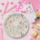 Pastellfarbene Tulpenmuster auf einem weichen beigen Hintergrund.