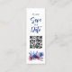Das "Save the Date" Lesezeichen, eine fesselnde und wirtschaftliche Alternative zu den traditionellen Karten, ist eine reizvolle Ergänzung zur Pastel Whispers Meadows Collection. Mit zwei symmetrischen Blume präsentiert es ein harmonisch ausgewogenes Design. Auf der Vorderseite stehen die Worte "Save the Date" in einem elegant spielerischen Schriftart, mit einem QR-Code, der auf Ihre Hochzeitswebseite verlinkt ist, inmitten der Blume, und eine moderne und bequeme Touch. Auf der Rückseite sind die wesentlichen Details ordentlich angeordnet, begleitet von einer kleineren Version der charmanten Blume, wobei die Kontinuität des Designs gewahrt bleibt. Die sorgfältig ausgewählten Blume aus der Pastel Whispers Meadows Collection vermitteln Einfachheit und Süße und tragen zur niedlichen und liebenswerten Ästhetik des Lesezeichens bei. Dieses Design erweckt nicht nur Aufmerksamkeit, sondern dient auch einem praktischen Zweck, sodass die Gäste das Lesezeichen bis zur eigentlichen Veranstaltung nutzen können. Im Wesentlichen verbindet diese Save the Date Karte Eleganz mit einem Hauch von Launen, verdoppelt sich als hochgeschätztes Memento und ermöglicht durch den eingebetteten QR-Code einen schnellen Zugriff auf Ihre Hochzeitsdetails.