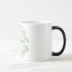 Daisy color morphing mug in pastel green and yellow, on a dotted background. Customize the name area.