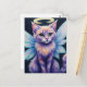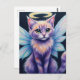 This postcard features an adorable pastel fairy cat with glowing halo and iridescent wings, whimsical fantasy art of a wide-eyed angelic kitten - perfect for magical décor.