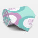 Diese Krawatte hat ein Muster von verstreuten Ovalen in Retro-Türkis und lila mit weißen Ovalen und farbigen Kreisen innen.
