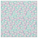 Dieser Stoff hat ein Muster von verstreuten Ovalen in Türkis und lila mit weißen Ovalen und Kreise mit Linien innen.