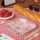 Die Papiertafel aus Party wird in einem schönen Aquarell in pastellrosa Rosa gedruckt. Passen Sie dieses Objekt an oder kaufen Sie, wie es ist. In 7" Größe angezeigt. Verkauft in Paket mit acht. Lizenziertes Bild