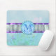 Dicke blaue Monogramm mit dekorativem Verband auf pastellblau, rosa, lila und grün blumengeschmücktem Hintergrund. Ein wunderschönes Dekorakzent für die Zuhause. Ein perfektes Geschenk für jeden Anlass.