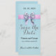 Pastellblau farbene, einfache Save the Date Einladung mit Bogen.