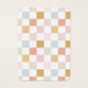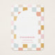 Ohrring-Display-Karte mit einem pastellfarbenen karierten Muster und einer gewölbten Form. Vorlagenlöcher können angepasst oder gelöscht werden, sowie alle Ihre Firmeninformationen. Fügen Sie Ihre Social Media oder Webseite ganz unten hinzu.