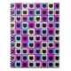 Niedliche und funky Silhouettegesichter der schwarzen Katze auf einem mehrfarbigen Pastellregenbogen quadrieren Hintergrund. Dieses Cartoonkatzenmuster ist sehr Hippieart und wird ein großes Geschenk für einen Katzenliebhaber machen!