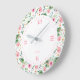 Moderne Aquarellfarben pastellrosa Blume mit grünen Blättern auf weißem, nahtlosem Muster. Römische Zahlen in hellrosa und weißem Gesicht.