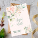 Hellrosa Rose und grüne Blätter für Save the Date- Einladungskarte.