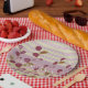 Künstlerisches Beerendesign und gestreifter Hintergrund