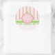 Ein Rundaufkleber mit einer perfekten Mischung aus Launen und Charme, um Ihren Süßigkeiten oder Bäckereikisten einen Freudenspass zu verleihen. Dieses originelle Design besticht durch seine sherbet-inspirierten Streifen, Polka-Punkte und ein lebendiges grünes Band.