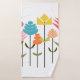 Ce kit de serviettes est muni d'un linge orange clair, d'une serviette orange foncé et d'une serviette de bain au design moderne du milieu du siècle, faite de fleurs en carré, ovales et diamants, manipulés pour former des fleurs.