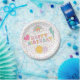 Herzlichen Glückwunsch zum Geburtstag. Patches im Retro-Stil und Sprinkle-Hintergrund.