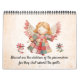 Nähen thematischer Wandkalender mit süßen Illustrationen von Engeln gekleidet in einem farbenfrohen Patchwork-Motiv und Blume Akzente. Verfügt über ein einzigartiges Engelsfee-Bild für jeden Monat, plus Cover und Back. Die Frontabdeckung kann mit dem eigenen Text personalisiert werden.