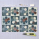 Das niedliche Ländermuster weist eine vierteilige Wiederholungsgrafik von Blume mit Patchwork-Schaltflächen in Blautönen mit komplementären Farben auf.