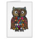 Eine niedliche Patchworkcollagen-Eulenillustration gemacht von den einzelnen Fotografien der Blumen, der Tiere, der Landschaften, der Sonnenuntergänge und noch des Lebens.