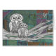 Mischmedien unter Verwendung der Collage und der zeichnen Techniken. Die ursprüngliche gezeichnete Hand, Eulenentwurf scannte an zum unterschiedlichen Hintergrund, um ein wirklich einzigartiges Stück zu machen. Eine große Karte für Eulenliebhaber.