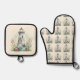 Patchwork Lighthouse Coastal Floral Scene Ofenhandschuh & Topflappen-Set