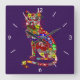 Patchwork-Miezekatze Quadratische Wanduhr