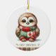 Patchwork Owl First Christmas Keepsake Photo Keramik Ornament