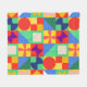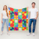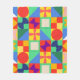 Diese mittelschwere Vlies-Decke hat ein Bauhaus-Design von Quadraten mit ungewöhnlichen Formen im Inneren, wiederholt über das Design.