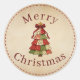 Gemütlich und nostalgisch, dieser runde Weihnachtsaufkleber zeigt einen vintage Patchwork-Quilt-Baum auf warmem Creme mit „Frohe Weihnachten“ in gebogener Schrift und einem roten genähten Rand. Perfekt als Briefumschlag-Siegel, Geschenketikett, Partygeschenk oder Akzent für die Verpackung von Kleinunternehmen. Koordiniert mit der Vintage Patchwork Quilt Weihnachts-Kollektion.