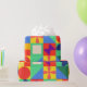 Dieses Verpackungspapier hat ein Bauhaus-Design von Quadraten mit ungeraden Formen innen, wiederholt über das Design.