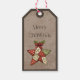 Fügen Sie Ihren Weihnachtsgeschenken mit diesem rustikalen Weihnachtsgeschenk-Anhänger eine gemütliche, traditionelle Note hinzu, der ein braunes texturiertes Design zeigt, das von klassischem Jute-Stoff inspiriert ist. Der warme, natürliche Look wird durch eine charmante Patchwork-artige genähte Stern-Ornament-Illustration in traditionellen Weihnachtsfarben Rot, Grün und Weiß ergänzt, wodurch eine zeitlose festliche Ästhetik entsteht.