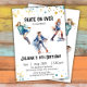 Cette invitation de fête d'anniversaire de patinage sur glace fait partie d'un ensemble d'accessoires de fête d'anniversaire assortis. Votre fille d'anniversaire va profiter de chaque moment de sa journée spéciale. Ce design présente les différentes nuances de bleu, avec des polices faciles à lire, et beaucoup d'espace pour ajouter toutes vos informations uniques.