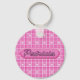 Niedlicher Schlüsselanhänger in kleinen rosa Herzen Muster mit Patricia-Namen bedruckt darauf.