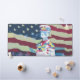 Pour les patriotes les plus fiers, ce tapis de bureau présente une illustration géométrique d'un fier soldat debout devant le drapeau américain.