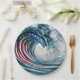 Eine mächtige Welle mit dem Muster der amerikanischen Flagge auf ihr, die die natürliche Kraft des Ozeans mit einem starken patriotischen Symbol zusammenführt