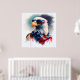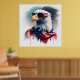 Vaterfarbener Glatzenadler mit blauer Brille und Bandana in den Farben der amerikanischen Flagge