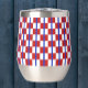 Sip in style with this eye-catching Patriotic Checker Stripe Stemless Wine Tumbler! Featuring a bold red-and-white checkerboard design accented with striking blue vertical stripes, this tumbler blends modern design with classic Americana vibes. Perfect for picnics, BBQs, or relaxing at home. Double-walled to keep your beverage chilled longer. A standout gift for any wine lover!