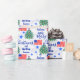 Dieses Patriotische Weihnachts-Weihnachtspapier zeigt meinen roten, weißen und blauen Weihnachtsbaum, die amerikanische Fahne, hellblaue Flaggen und Ihren eigenen Text auf einem grauen Marmorhintergrund aus Imitat. Alle Texte in diesem Urlaubsmuster Geschenkpackung ist eine Vorlage, sodass Sie Ihren Namen hinzufügen können, ändern Merry to Happy, Weihnachten zu Feiertagen und Gott segne Amerika zu Happy New Year, wie Sie wünschen für eine der personalisierten Geschenkpackungen. Das diagonale Muster dieses patriotischen Verpackungspapiers wechselt zwischen den bunten Bäumen und der US-Flagge ab und ist somit eine große Wahl für Militärfamilien, Veteranen und patriotische Amerikaner im ganzen Land.