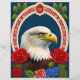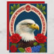 Das Bild eines Glatzenadlers, der die majestätischen Merkmale des Vogels einfängt, mit einer zusätzlichen künstlerischen Touch klassischer Rot-, Weiß- und Blütenelemente. Die Blumenelemente wurden mit modernster Technologie entworfen und umfassen Rose, Blätter und Blume.