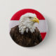 Ein wunderbares Bild eines Glatzenadlers, der vor einer amerikanischen Flagge posiert.