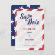 Eine klassische, anpassbare, patriotische Save the Date Karte, um die Augen Ihrer Verwandten, Freunde und Nachbarn zu erwischen.