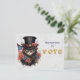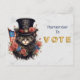 A dignified, long-haired cat gazes forward with calm authority, wearing a vintage top hat adorned with subtle celestial motifs, a red-and-white band, and a brass clock medallion. Soft red and blue roses frame the cat’s face, weaving through its fur in a patriotic floral wreath. A small American flag rises proudly at one side, blending national pride with Victorian elegance. The artwork combines whimsical Americana with refined, storybook charm, evoking both independence and timeless grace.