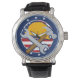 Uhr, Vintage Männeruhr mit schwarzem Lederarmband