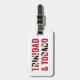Moderner, patriotischer TRINIDAD Gepäckanhänger mit KUNSTBAR-SAMPLE-TEXT auf der Rückseite. Das Design zeigt TRINIDAD & TOBAGO in der bekannten schwarz gestreiften Flagge von TRINIDAD. Dieses Reisegepäck der TRINIDADIAN-Unabhängigkeit wäre ein ideales Geschenk für den patriotischen TRINIS, wenn er auf und um Reisen geht. Entsprechende TRINIDADIAN Party- und Geschenkideen finden Sie in der Kollektion TRINIDAD AT 60 von Berean Designs.