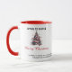 CHRISTMAS MUG ATH1: is a Christmas Tree Appeal to Heaven Flag Implication - Merry Christmas Mug - with education verbiage on origin with sample evergreen tree emblem.