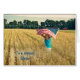Jeune fille courant dans un champ de blé avec drapeau américain. La carte peut être utilisée pour l'anniversaire, la fête des anciens combattants ou tout événement patriotique.