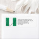 Patriotische NIGERIAN FLAG Rücksendeadressen-Aufkleber, die kombinierte Gestaltung der Karte Kontur und Fahne von NIGERIA. Ersetzen Sie einfach den KUNDENBARE TEXT mit Ihren Adressdaten. Eine großartige Touch für alle Ihre Karten und Briefe. Matching-Elemente verfügbar.