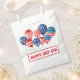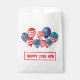 Dieses Party Leckerei Gunst Tasche ist in Weiß mit einem festlichen 4. Juli patriotischen Ballondruck. Passen Sie dieses Objekt an oder kaufen Sie, wie es ist. Lizenziertes Bild