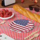 Patriotische Papiertafel mit Flagge der USA. Pappteller