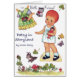 Un message personnalisé adorable pour votre ami ou n'importe qui. Adorable vintage "Patsy in Storyland". . Mignonne petite poupée en papier tout-petit avec cheveux rouges, vêtements à découper et un motif irlandais. Customisez avec le nom et votre propre message.