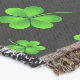 Pattern of green shamrocks on black background decke